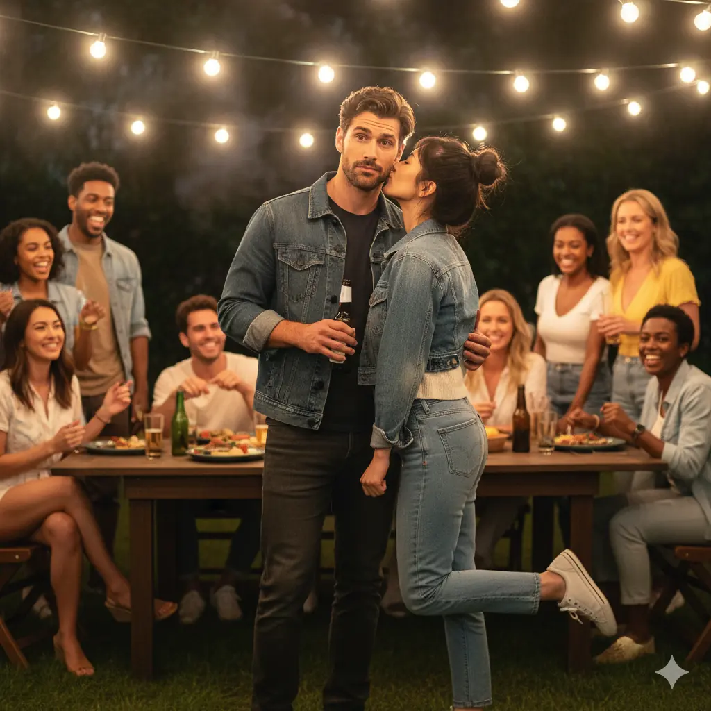 Luca家的後院大得像一個迷你足球場,屋簷拉著一排排串燈,長桌上已經擺滿烤雞、啤酒,還有某個人做的可疑馬鈴薯沙拉。